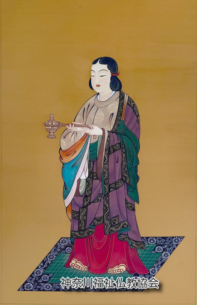 掛軸と2030年完成予定の聖徳太子孝養像の勧進をしております。毎月二十二日にのご縁日に当協会が続く限りご供養させて頂きます。